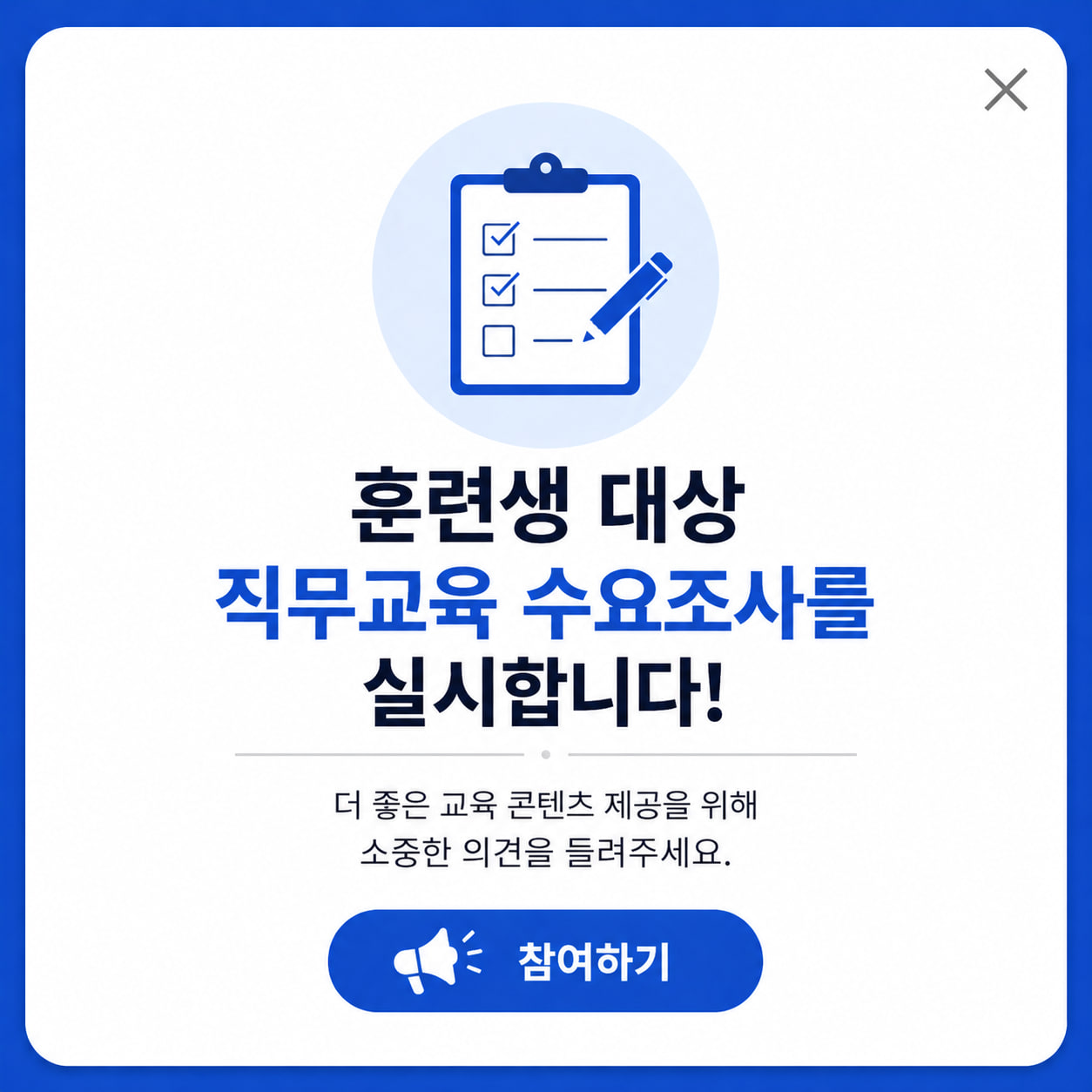 훈련생분들을 대상으로 직무교육 수요조사를 진행하고 있습니다.