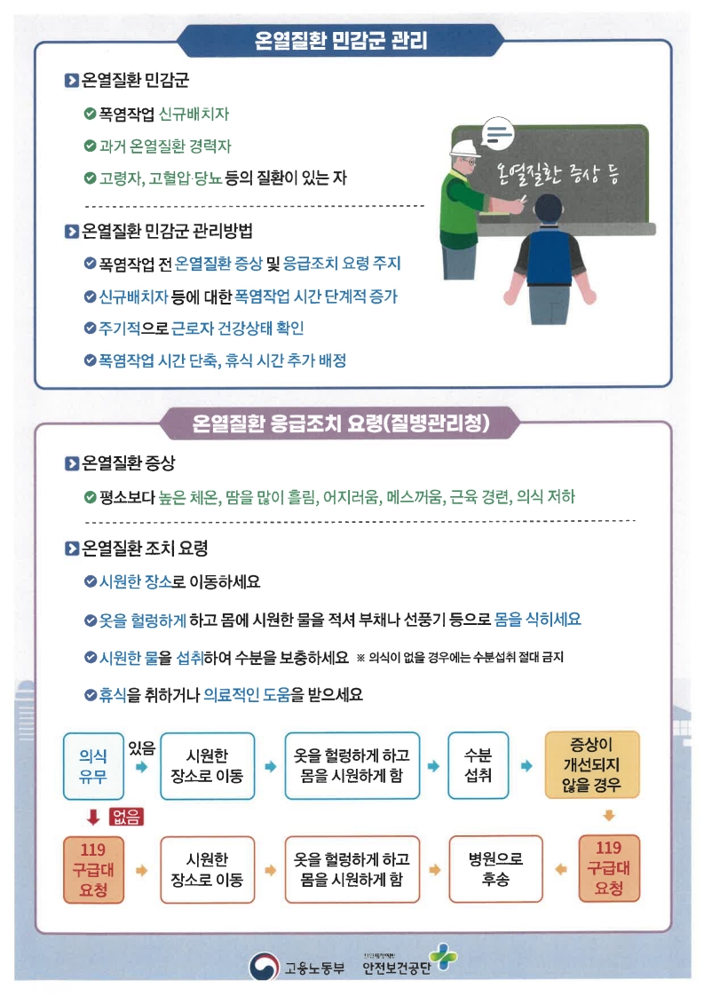 [고용노동부] 온열질환예방지침 및 폭염안전 5대 기본수칙 자율점검표 안내
