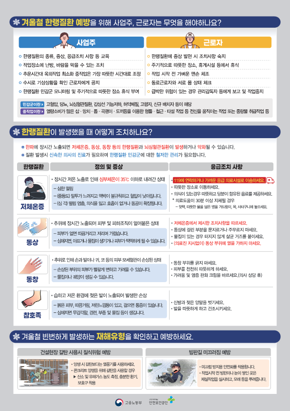 본 저작물은 안전보건공단에서 2024년 작성하여 공공누리 제4유형으로 개방한 '2024년 한랭질환 예방가이드'를 이용하였으며,